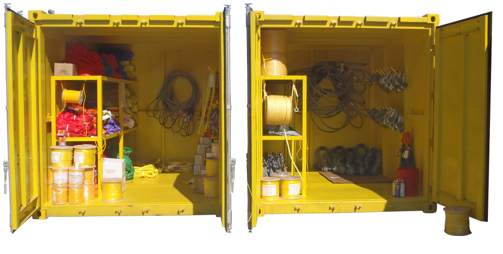 Liftmax® rigging containers are designed as customizable storage containers for slings, rigging hardware, tools, and equipment for on-site use. Customer specifies all interior components; where hooks, racks, and shelving should be placed as well as lighting and electrical outlet placement. Liftmax® rigging containers are most commonly used for holding oilfield and construction materials and parts. Please contact sales@liftmax.com with any inquiries.